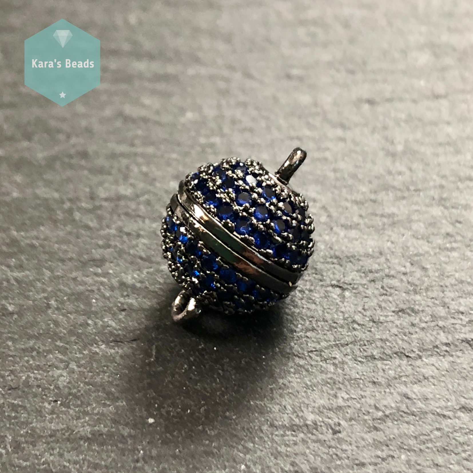10 mm Black with Sapphire Zircon Round Strong Magnetic Clasp 1 pc