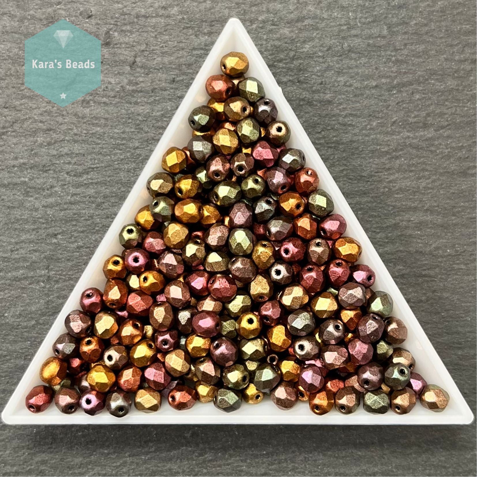 300pcs Tube 4mm Fire Polish 01640 Purple Iris Gold
